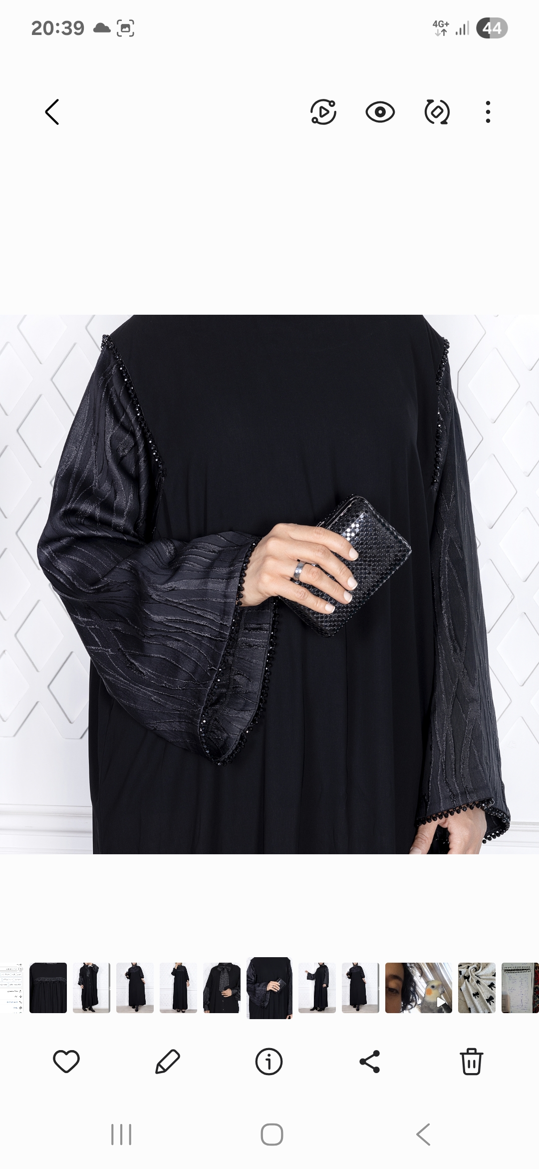 آستینهای مانتو با پارچهی ژاکاردی نفیس و برجسته پوشیده شدهاند که ترکیبی هنرمندانه از ظرافت و بافت را ارائه میکند. تضاد میان لطافت حریر و ساختار برجسته ژاکارد جلوهای خاص و چشمنواز خلق کرده است. این مانتو انتخابی است ایدهآل برای بانوانی که به دنبال شکوه، راحتی و تمایز در هر موقعیتی هستند.